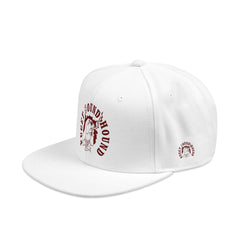 The Snapback exudes high-quality craftsmanship with its structured, 6-panel, high-profile design. Made from a durable blend of 85% acrylic and 15% wool, this cap features a firm front panel, flat visor, and full buckram for a classic, sturdy fit. The 6 embroidered eyelets match the crown color, providing a clean look, while the grey under-visor adds a stylish contrast.