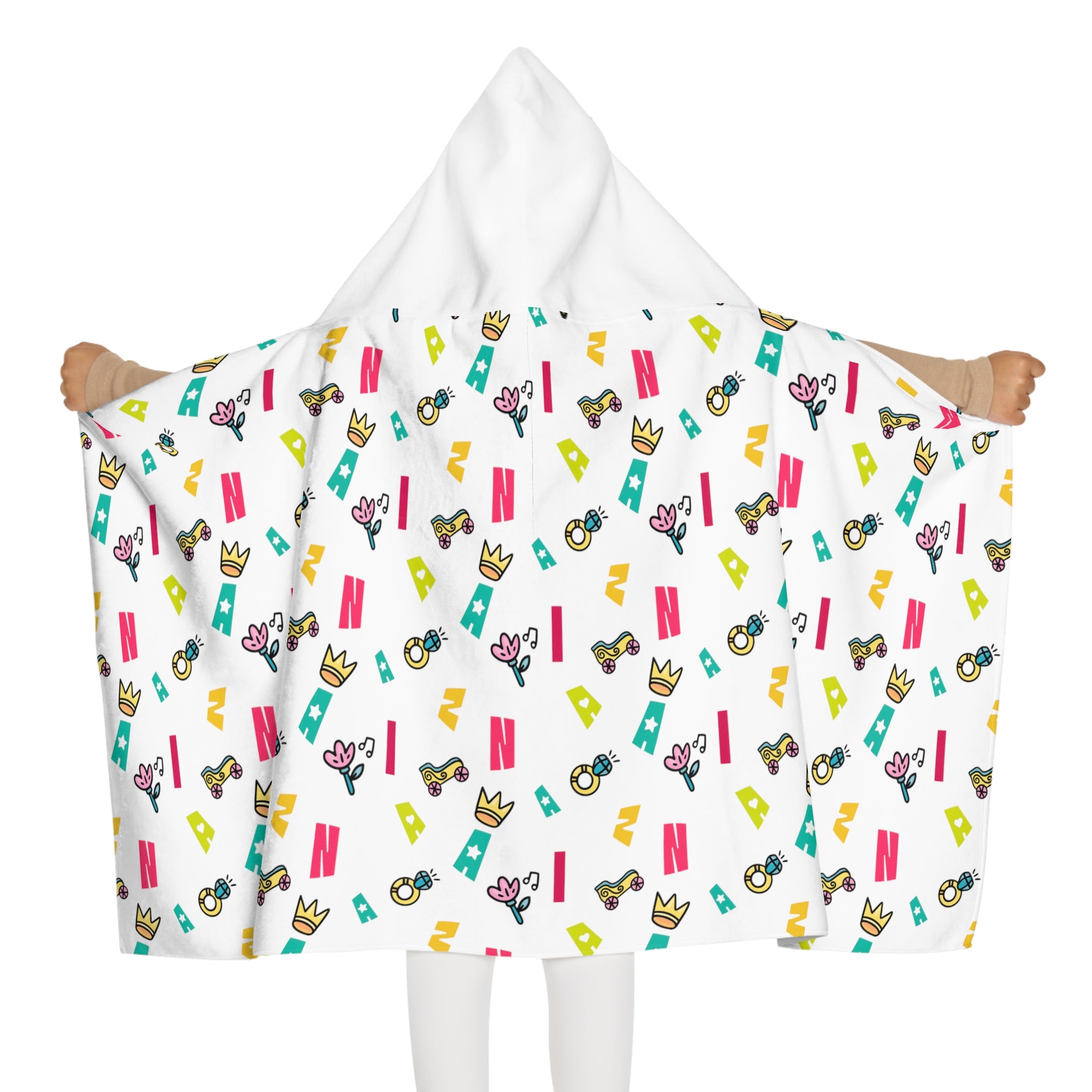 With a 66% polyester outer layer and a 34% terry cotton loop lining, this Zaina the phenom hooded towel has unparalleled softness and can become the perfect canvas for playful designs. Add your artwork and create a towel hoodie that kids will adore using whether at the beach or at home.