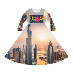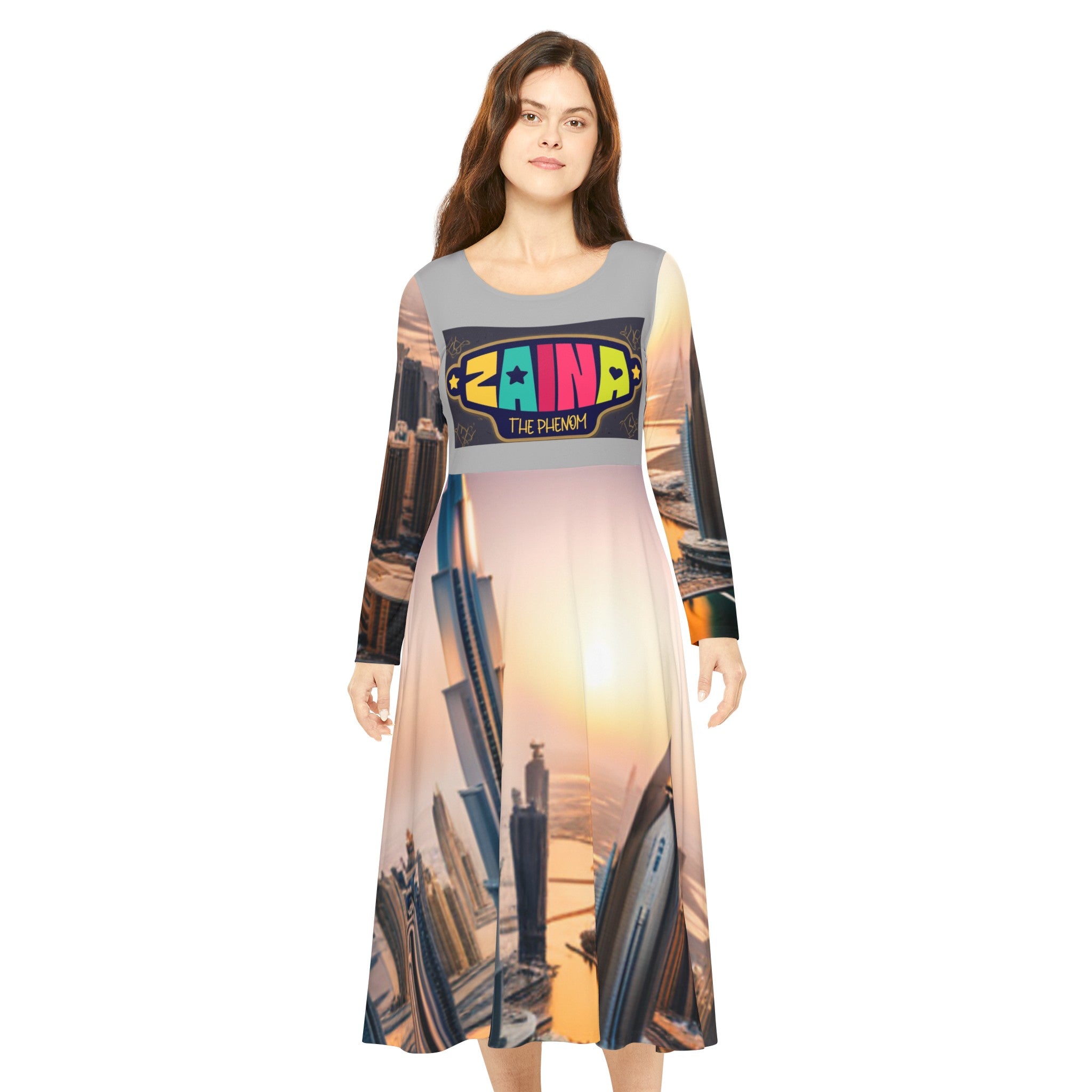 Zaina The Phenom Logo/Dubai Women's Long Sleeve Dance Dress (AOP)
